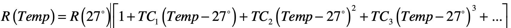 The built-in model for the BJT accounts for variations in temperature. The same cannot be said for the resistors. In order to account for changes in resistance due to temperature variations, one must indicate the temperature dependency using a array of temperature coefficients TC1, TC2 , TC3 , …. These coefficients are incorporated into the resistance formula according to the following polynomial equation,