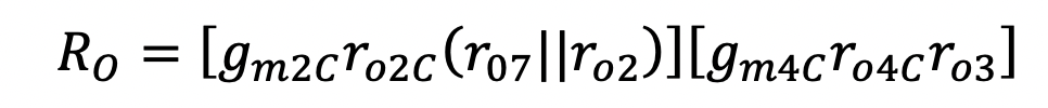 Knowing the device operating currents, we can compute the small-signal parameters of the devices of interest, and thus, calculate expected frequency response behavior of the op amp. Below we list the transconductance and output resistance of the appropriate transistors of the CMOS and BiCMOS op amps. These can then be used to compute small-signal parameters $A_0$, Ro, fD and ft, as mentioned above.